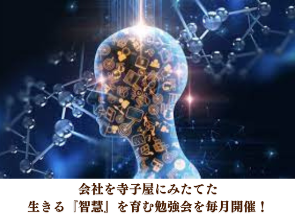 中小企業の会社を寺子屋に見立てて、世の中でおきている事象を例に、智慧をもって賢く物事を見極めていく力、直観力を育んでいきます。