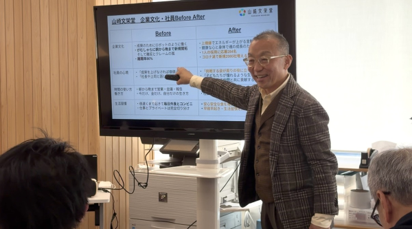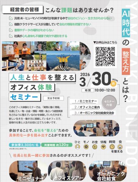 そこで、山崎文栄堂では、実際に経営資源の人・物・お金・情報・時間・食をどのように整えているか、オフィスの現場をありのままご覧いただく、オフィスツアーを行っています。